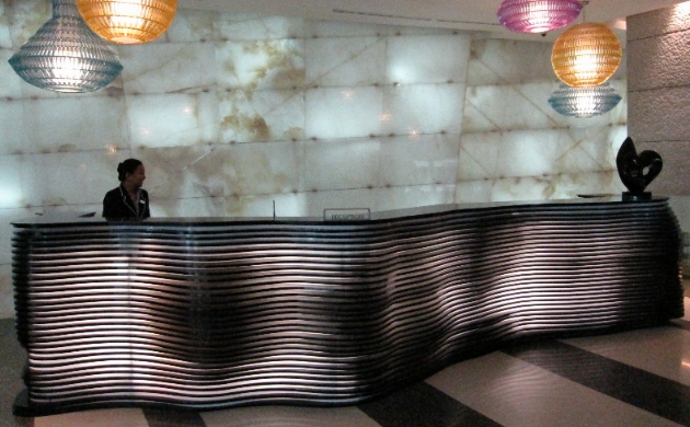 INFO: Our Project at the Enpire Hotel, It is Subang Jaya's New Landmark, was opened in 2010. We supply the Waving Shape Panel for all the counters.